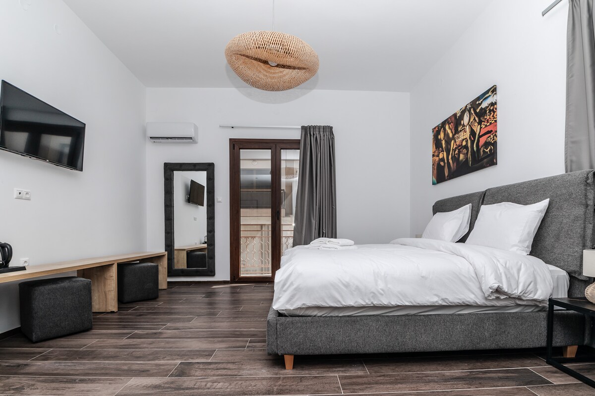 Moderni, valoisa ja täysin varusteltu yksiö keskellä kaupunkia. Se sijaitsee 5 minuutin päässä Voloksen rannalta ja kasvatustieteiden yliopistolta. Ympäröivillä kaduilla on ilmainen pysäköinti. Naapurustossa on apteekki, leipomo, kioski ja markkinoita. Huoneisto koostuu eteisestä, jossa on seinäkaappi, kylpyhuoneesta, huoneesta, jossa on parivuode ja nojatuoli, joka voidaan muuttaa vuoteeksi, sekä täysin varustellusta keittiöstä.