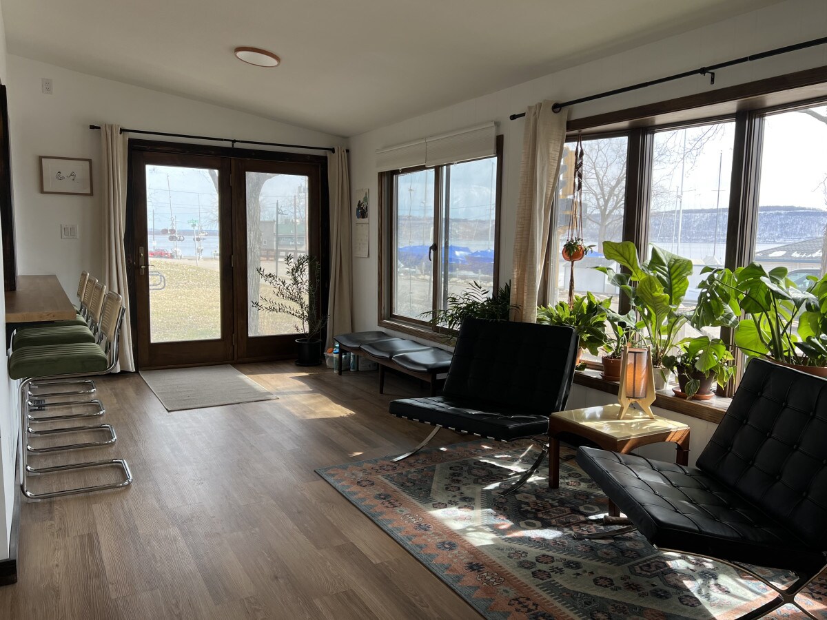 Pepin Marina Retreat: Main Floor Studio Apartment sijaitsee Pepin Marinan vastapäätä viehättävässä Pepin Wisconsinin kylässä. Avoin pohjaratkaisu on entinen jäätelökauppa, joka on rakennettu vuonna 2010, ja siinä on upouusi keittiö ja saarikeittiö, josta on näkymät järvelle. Tämä loft-tyylinen tila on täydellinen kahdelle hengelle (mutta siihen mahtuu enemmän lapsia ulosvedettävillä sohvilla, joten tilaa on jopa 5 hengelle). Tämä voidaan vuokrata yksin tai yhdessä yläkerran mökkihuoneiston kanssa!