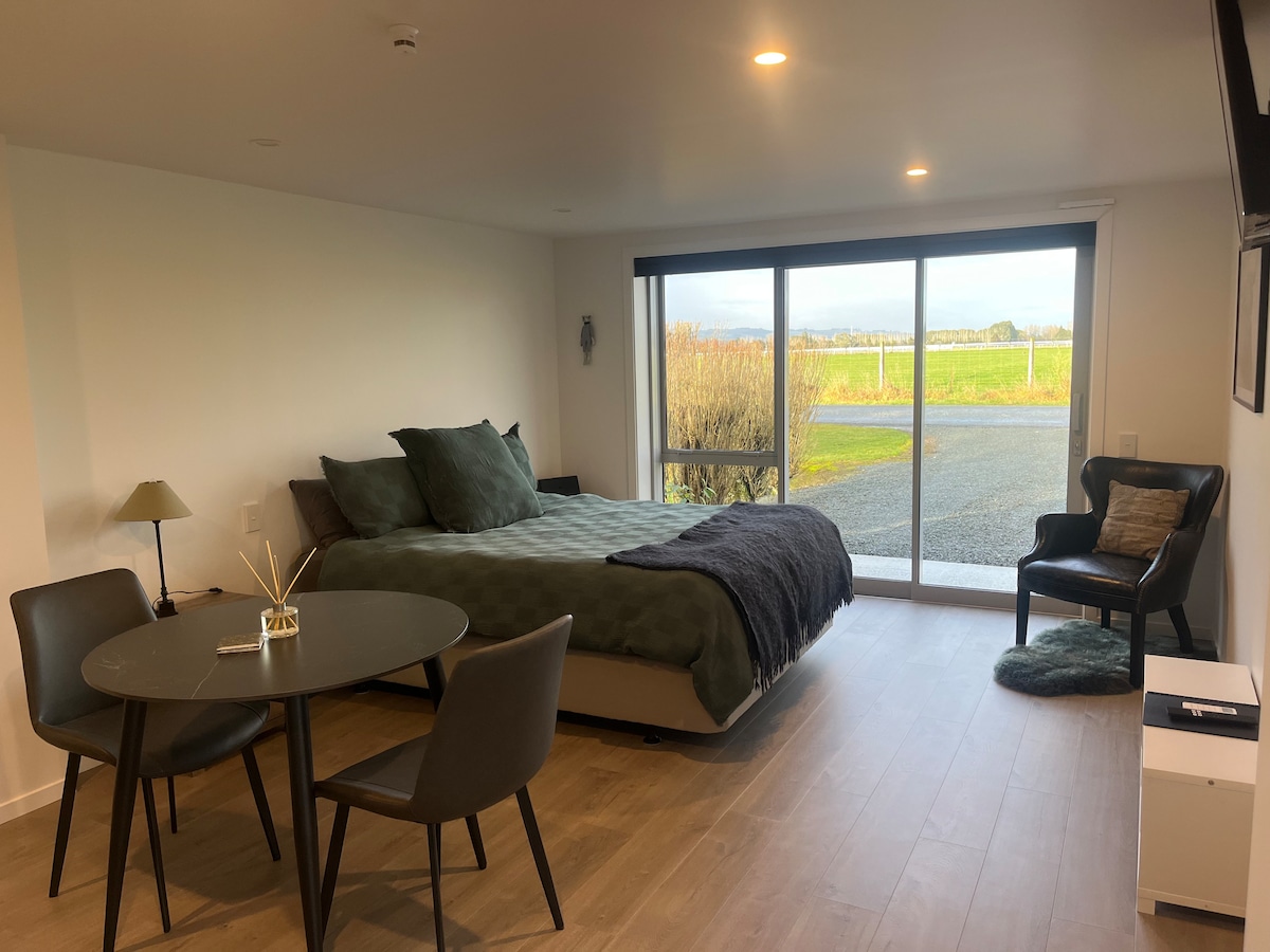 Welcome to our newly built self contained unit on our Southland sheep farm. The unit is a magical spot where you are completely separate and private. It contains a queen bed, a small kitchen with a cooktop and microwave. There is a large well appointed bathroom and a nice private outdoor area to enjoy a drink, catch up on emails or read a book.