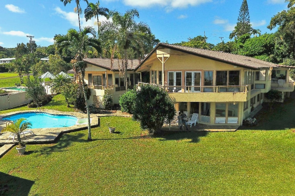 Taloni on muutaman lyhyen kilometrin päässä Hilon kaupungista, ja se tarjoaa yksinkertaisesti parhaan mahdollisen merinäköalan. Katsot alas syöksyviä aaltoja ja ulos lahden yli Hiloon ja surffaajiin, jotka liukuvat alas hopeisia aaltoja. Näkymä on dramaattinen, mutta rentouttava. Valaskauden aikana tämä on paras mahdollinen paikka katseluun. Joskus he tulevat niin lähelle, että voit katsoa heidän silmiinsä. Talo on täysin varusteltu ja ilmastoitu. Tämä on ikimuistoinen lomasi Tyynenmeren alueella.