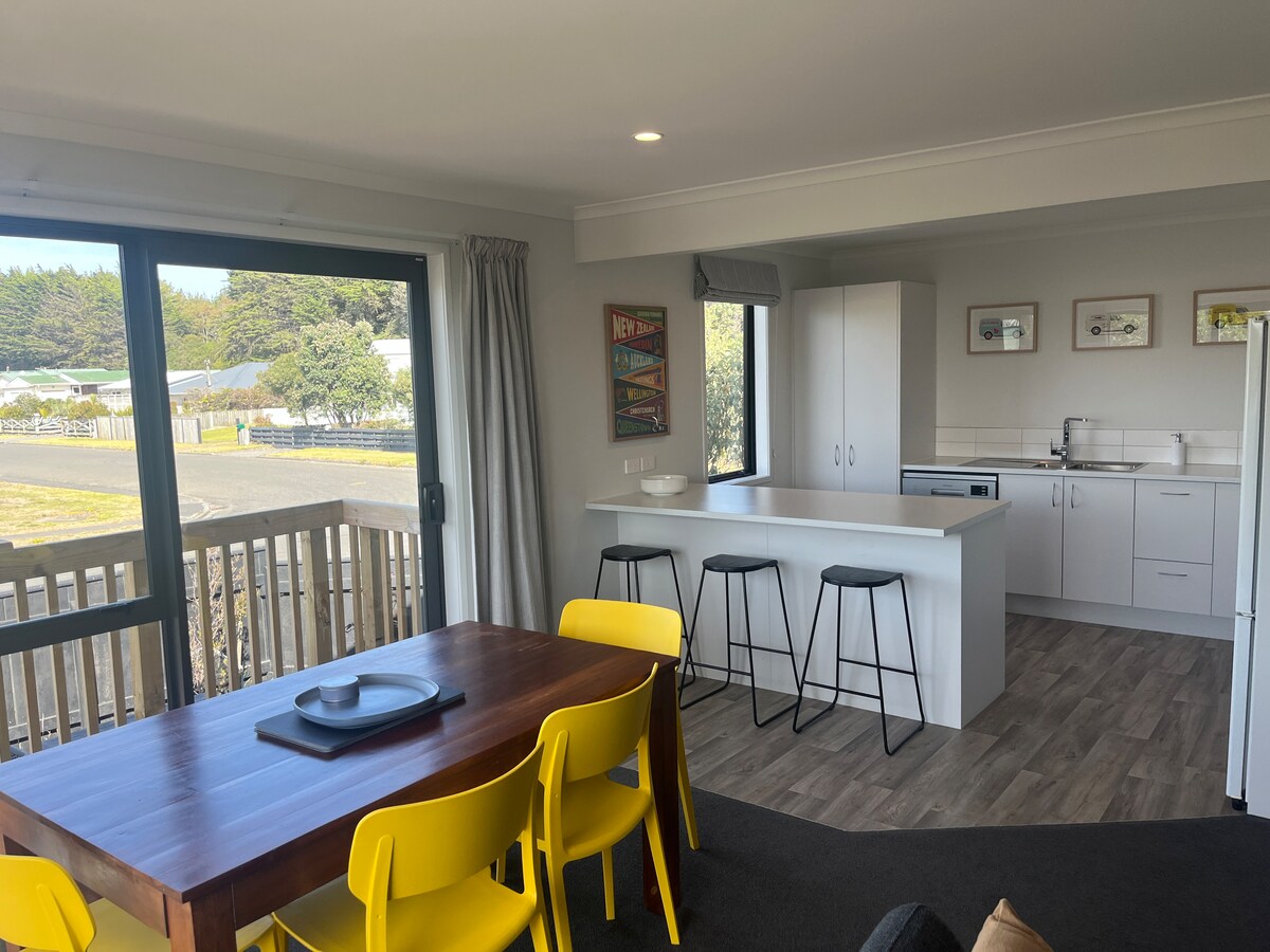 Modern 3 bedroom house - sleeps 7 - with WIFI, good view, on a quiet street, and short 5 minute walk to the grocery shop. Tennis courts, volley ball & children's play area at the rear of and can view from the property. Wall heaters in every room. Only 250m from the beach. Sea views from inside home, and from decks. Bike riders and walkers will love Waiterere. Cars and quad bikes are also allowed on the beach. On the beach you can drive & a PATROLLED Beach surf club on weekends and Holidays.