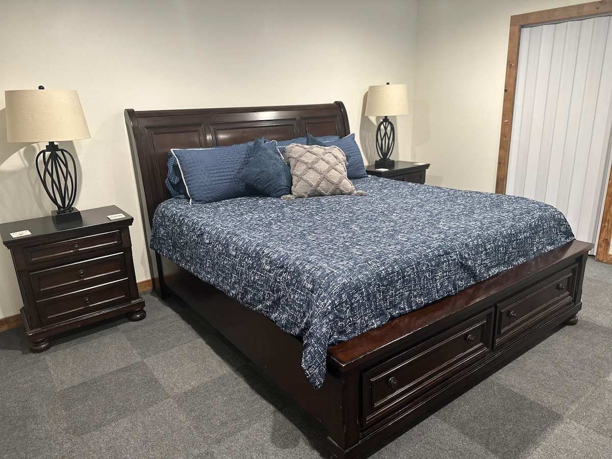 Minutes from the interstate, The Barn is tucked away from life's hectic pace and is a great place to enjoy the peace and quiet of nature. This new addition combines modern amenities and rustic charm. As you pull on to our road The Barn is to the left of our home. Feel free to roam around where we raise rabbits, ducks, and chickens. We often see deer wandering behind the pond. Relax in the cozy indoors, soak up fresh air on the porch, or build a fire in the firepit. Come, be our guest!