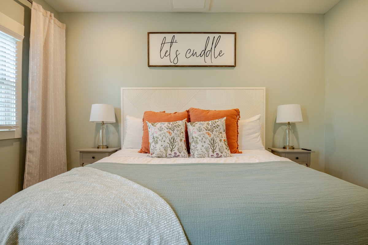Tervetuloa äskettäin remontoituun yhden makuuhuoneen kohteeseesi! Tässä tyylikkäässä lomakohteessa on tilava king-vuode ja mukava vuodesohva, jossa on sijauspatja lisämukavuutta varten. Upeassa keittiössä on upouudet kodinkoneet, jotka sopivat täydellisesti kulinaarisiin seikkailuihin. Ulos astuttuasi pääset takapihan yksityiselle terassille, jossa on Solo Stove -grilli, joka lämmittää iltaa kuin kevyttä illallista. Lisäksi voit nauttia kävelyetäisyydellä sijaitsevasta vilkkaasta keskustasta. Ihanteellinen toinen kotisi odottaa!