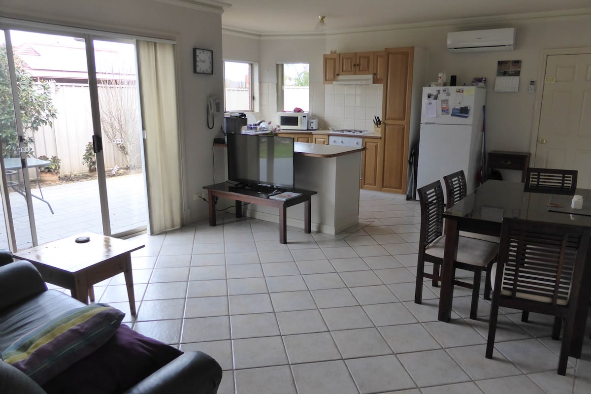 Kohteeni sijaitsee kätevästi kaupungin ja rannan puolivälissä hiljaisella kadulla, alle 10 minuutin ajomatkan päässä lentokentältä, Viihdekeskus ja supermarketit ja 5 minuutin kävelymatkan päässä Linear Park/Torrens joki/pyörätie, julkinen liikenne, leikkikenttä, julkiset tenniskentät, ravintolat ja 24 h OTR. Kohteeni on ihanteellinen pariskunnille, yksin matkustaville seikkailijoille, liikematkailijoille ja perheille (lasten kanssa majoittuvat).