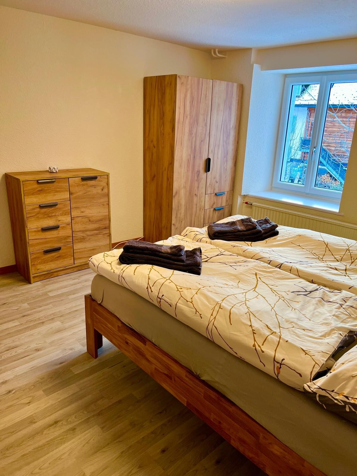 Luonnon keskellä upeilla näkymillä. Hiihtolatu on aivan talon ympärillä. Hiihtohissi on vain muutaman minuutin päässä. Tämä 3,5 huoneen asunto (3-4 henkilöä) voidaan vuokrata. 3,5 huoneen huoneiston hinta on 840 CHF 7 päiväksi. Vuokraus on mahdollista myös vain viikonlopuksi. Asunnossa on suuri makuuhuone, jossa on parivuode (160 cm), toinen makuuhuone, jossa on vuode (140 cm), sekä hyvä siirrettävä matkasänky. Myös vauvansänky on saatavilla. Pesukone/kuivausrumpu