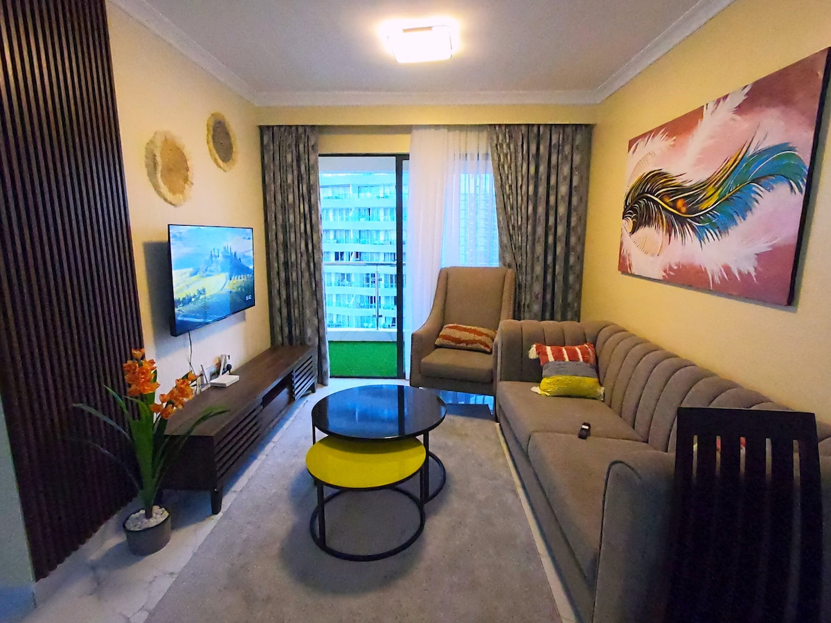 Moderni 1 makuuhuoneen huoneisto upeilla kaupunkinäkymillä Kilimanissa Tervetuloa tyylikkääseen lomakotiisi 16. kerrokseen! Tämä äskettäin rakennettu, kauniisti sisustettu yhden makuuhuoneen huoneisto tarjoaa viihtyisän, kodikkaan tunnelman ja henkeäsalpaavat kaupunkinäkymät. Nauti rauhallisesta yöstä mukavalla patjalla, jossa on puhtaat valkoiset liinavaatteet, ja rentoudu 55 tuuman älytelevision ääressä suosikkiohjelmiesi ja -elokuviesi parissa. Aloita päiväsi ilmaisella kahvilla, teellä ja sokerilla ja virkistä