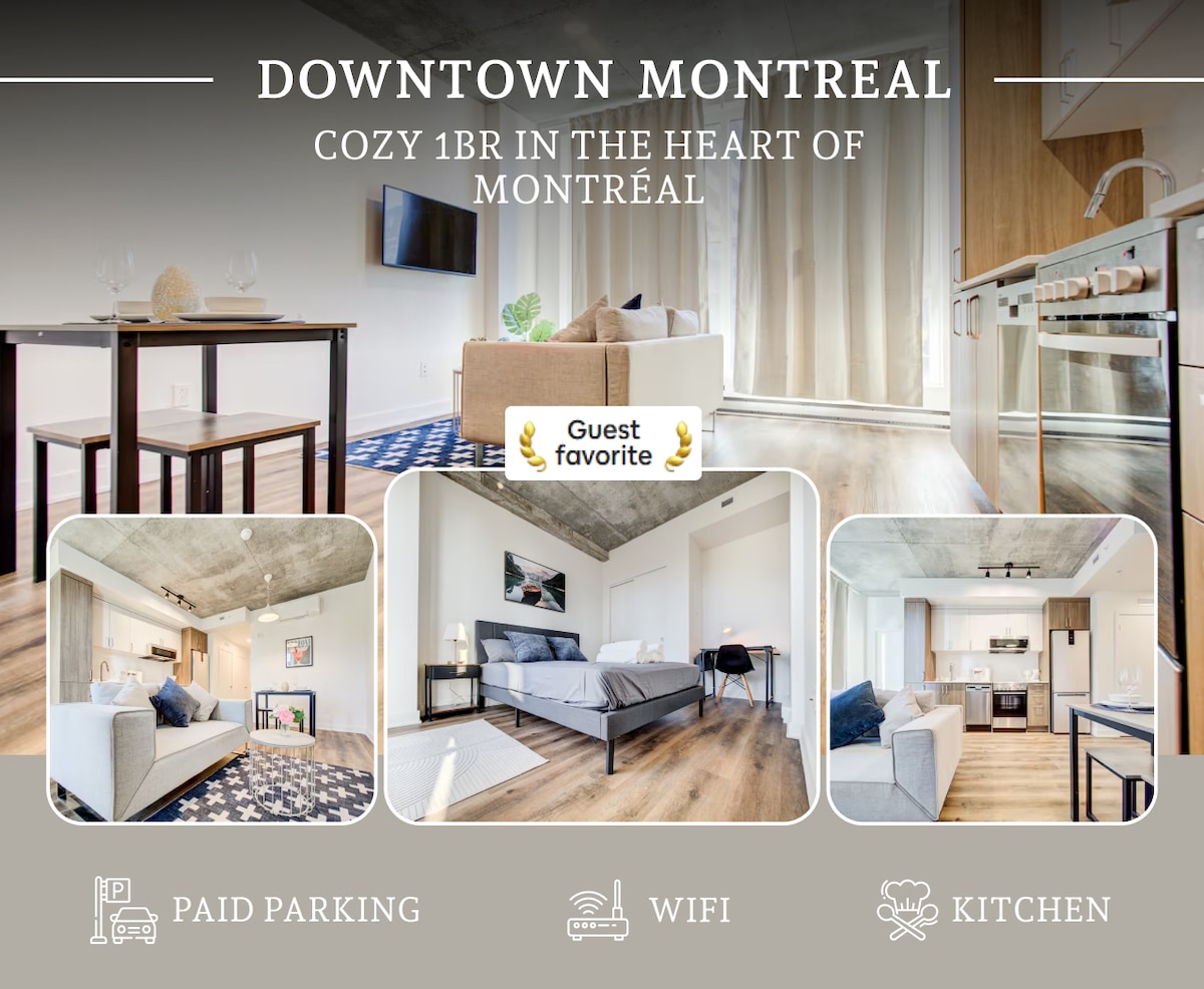 Nauti majoittumisestasi kaupungin sydämessä! Upouusi TDC 2 keskustan ylellisyys suoralla pääsyllä Bell Centeriin! Nauti mukavuudesta täysin kalustetussa ja varustetussa yhden makuuhuoneen huoneistossamme, jossa on oma yksityinen parveke! Majoittumiseesi sisältyy pääsy saunaan, uima-altaalle, kuntosalille, kattoaulalle, pelihuoneeseen, oleskelutilaan ja terassille, jossa on useita grillejä. Ilmainen maanalainen pysäköinti, metro vain muutaman minuutin päässä. Voit tutustua kaupunkiin ilman, että astut ulos. Lisäksi voit rentoutua ilmaisella Netflixillä täydellisen majoituksen aikana.