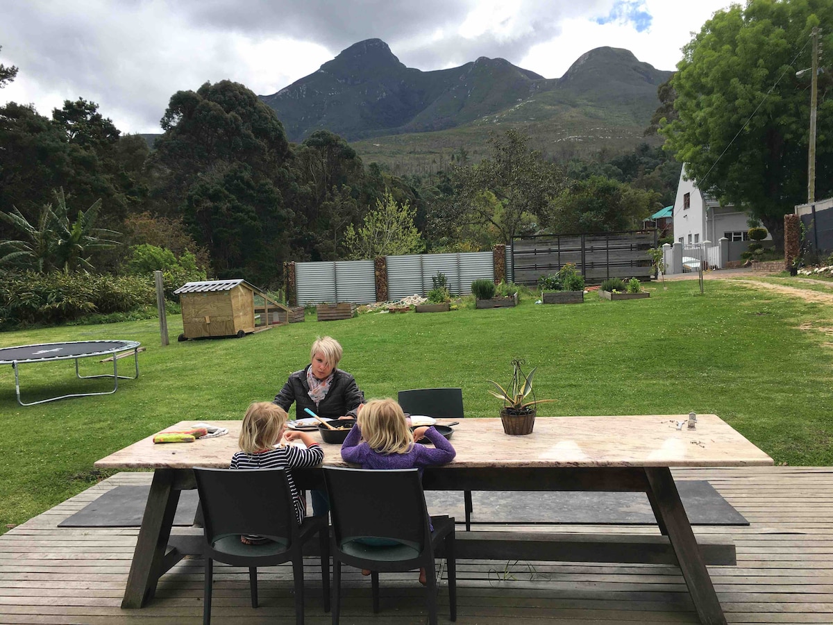 Toivotamme sinut tervetulleeksi pieneen erämaanautintoomme, jota ympäröivät taianomaiset Outeniquan vuoret ja fynbos-kasvillisuus! Unelmamme on luoda kestävä koti ja palauttaa tämä upea afrikkalainen maa, elää yksinkertaisesti ja kunnioittaa luontoa. Olemme parhaillaan kunnostamassa maatilaamme. Haluamme jakaa tämän ihanan paikan, sen UPEAT näkymät ja puutarhat samanhenkisten ihmisten ja matkailijoiden kanssa ja rohkaista sinua tutustumaan kauneuteen, joka ympäröi meitä täällä Garden Routella.