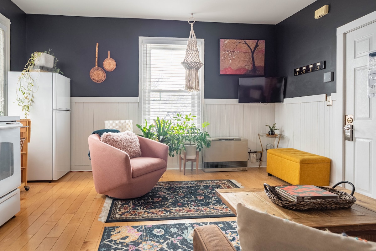 Nauti vierailustasi tässä viihtyisässä, äskettäin remontoidussa toisen kerroksen yksiössä! Tämä aurinkoinen huoneisto sijaitsee Burlingtonin Old North Endissä, 10 minuutin kävelymatkan päässä keskustasta ja Church St:stä. Ihana paikka aloittaa seikkailusi Vermontissa! Wifi, TV ja pysäköinti sisältyvät hintaan.