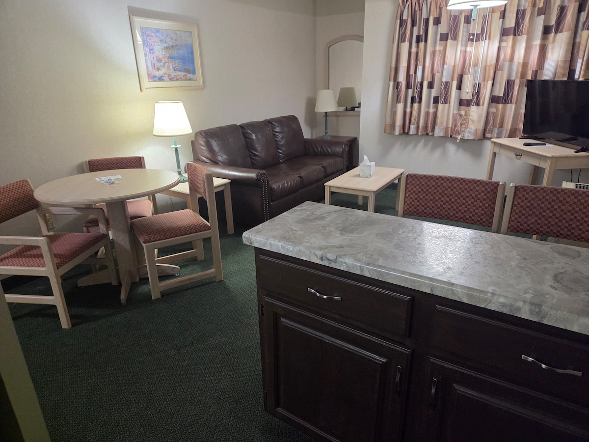 The GrandStay Hotel & Suites La Crosse is located in beautiful downtown, steps from the Mississippi River and International Friendship Gardens. Yhden makuuhuoneen sviitissämme on queen-vuode erillisessä makuuhuoneessa, täysin varustettu keittiö, jossa on paikka-asetukset neljälle ja pöytä, jossa on kaksi tuolia . Sviitin olohuoneessa vieraat voivat rentoutua täysikokoisella vuodesohvalla ja klubituolilla, jossa on ottomaani. Tarjoamme ilmaisen Grand Start -aamiaisen, ilmaisen internetin ja ilmaisen pysäköinnin.