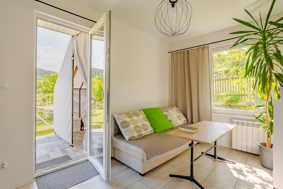 For rent an apartment in a single-family house in a quiet and peaceful area, for 3-6 people with children. 2 makuuhuoneen huoneisto, jossa on keittotila ja kylpyhuone. Tarjoan pyyhkeet, liinavaatteet, pääsyn puutarhaan, grillitilat, pysäköinnin kohteessa, wifin. Lähellä olevat nähtävyydet: -Lescan (vuoristopolku) - Peitetty uima-allas Andrychówissa -adowice (John Paul II Museum, noin 4 km ) - Miniatyyripuisto Inwałdissa (noin 7 km) - Zatorlandin huvipuisto ja Energylandia ( n. 14 km ) -Wieliczka, Krakova