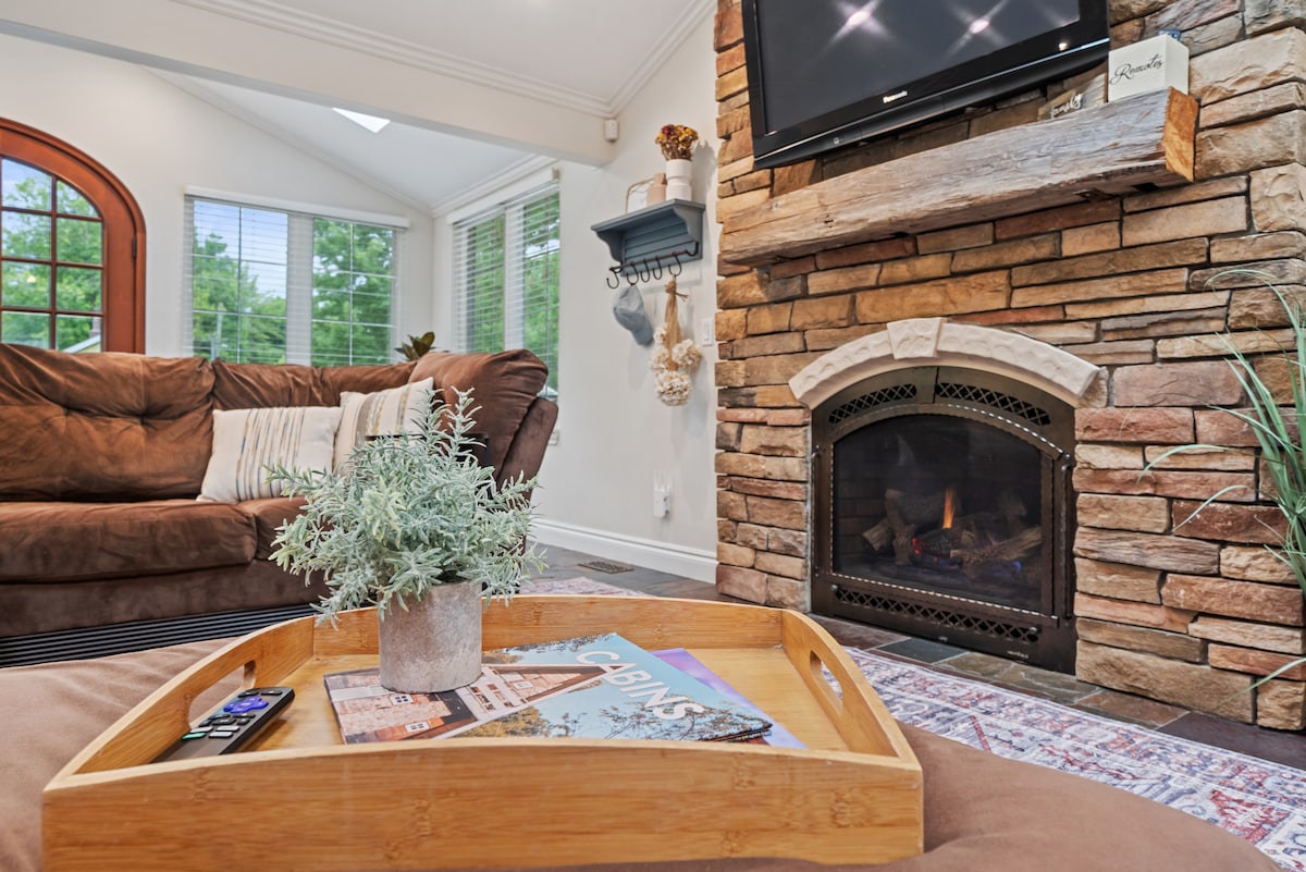 Et majoitu isoäidin mökillä täällä! Siisti ja siisti mökkimme on täynnä päivityksiä ja tilaa koko perheellesi, ystävillesi ja lemmikeillesi. 2 yksityistä makuuhuonetta ja tilaa pakata lapset parvekkeelle. Olemme vain lyhyen kävelymatkan päässä yhdestä kahdeksasta yksityisestä järvenkäytöstä, joita voit käyttää! Ulkotilamme on täydellisesti varustettu lomaa varten, ja siellä on UPPOUUSI KUUMA KYLPYAMME! Nauti kahvista etuterassilla, grillistä takaterassilla ja istu nuotion ympärillä pimeän tultua aidatulla pihalla.