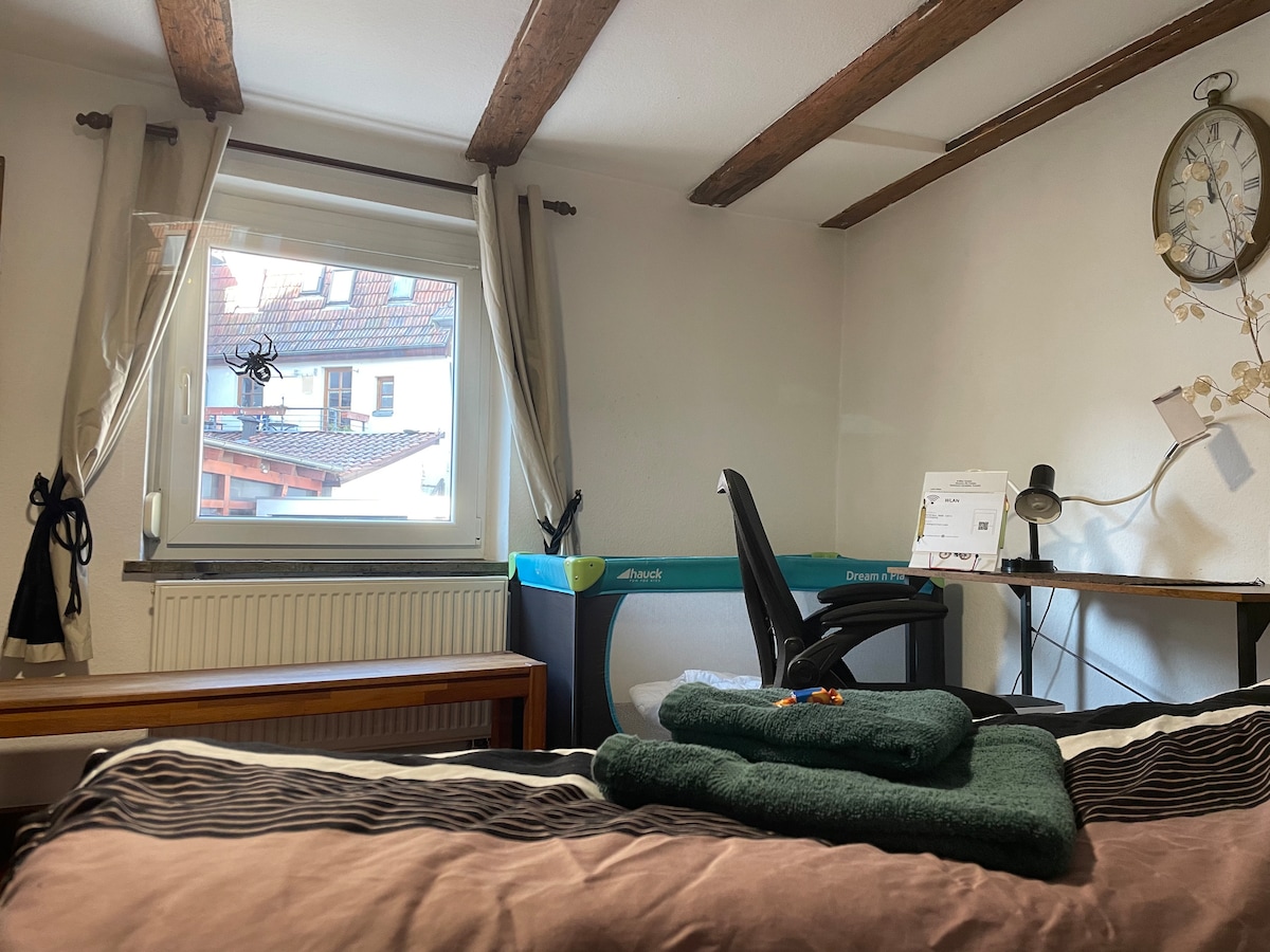 Komplett renovierte 2 1/2 Zimmer Ferienwohnung mit geschmackvoller Einrichtung. Neue Möbel, Küche mit allem, was zum Kochen und Backen benötigt. Tageslichtbad mit der Dusche , Pflegeprodukte (Duschgel und Shampoo). Schlafzimmer mit Hochwertigem Doppel-Boxspringbett, Spiegelschrank . Schlafsofa für weitere Gäste .Erleben Sie die Schönheiten der Landschaft um Langenburg herum und genießen Sie die Ruhe in den Wäldern und auf den Feldern-nicht nur beim Blick aus einem Fenster Ihre Ferienwohnung