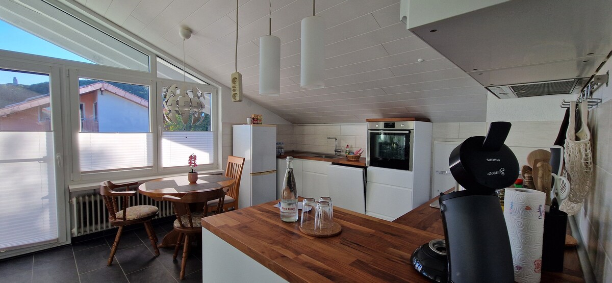 Nohjaudu taaksepäin ja rentoudu – tässä rauhallisessa, tyylikkäässä ja rakkaudella sisustetussa noin 55 neliömetrin asunnossa. Huoneisto sijaitsee maaseudulla ja on aivan lähellä vaellusreittejä, metsää, hiihtolatuja ja laskettelurinteitä. Huoneisto sijaitsee kahden perheen talon ullakossa. Se on äskettäin kunnostettu, ja kylpyhuoneen suuri sadekuvioinen suihku kutsuu sinut rentoutumaan. Täysin varustellussa keittiössä voit valmistaa ruokaa itsellesi.