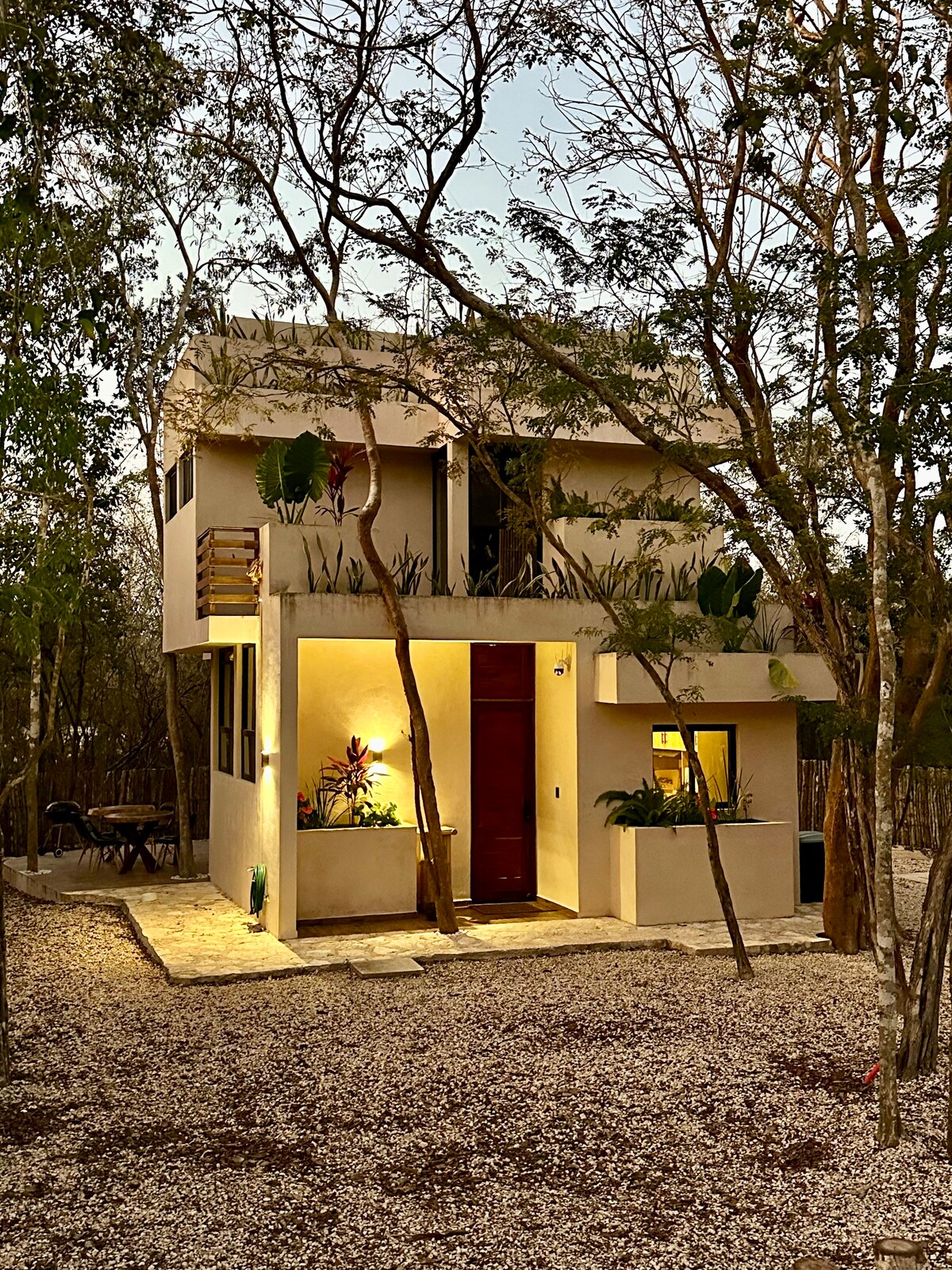 Täydellistä rauhaa, hiljaisuutta ja luonnonkauneutta, kaukana hälinästä ja melusta. Viehättävä, täysin varustettu (sähkö, internet, lämmin vesi, pakastin, täysin varustettu keittiö, jossa on kaasuliesi) itsepalveluun perustuva mayojen oljesta valmistettu maja, joka sijaitsee Yucatánin suurimman ja vanhimman (ja myös YKSITYISEN – ei päiväretkeilijöitä tai muita vieraita) cenoten reunalla. Tämä kirjaimellinen keidas houkuttelee valtavan määrän lintuja ja eläimiä. Sijaitsee keskellä luonnonmukaista trooppisten hedelmien hedelmätarhaa.