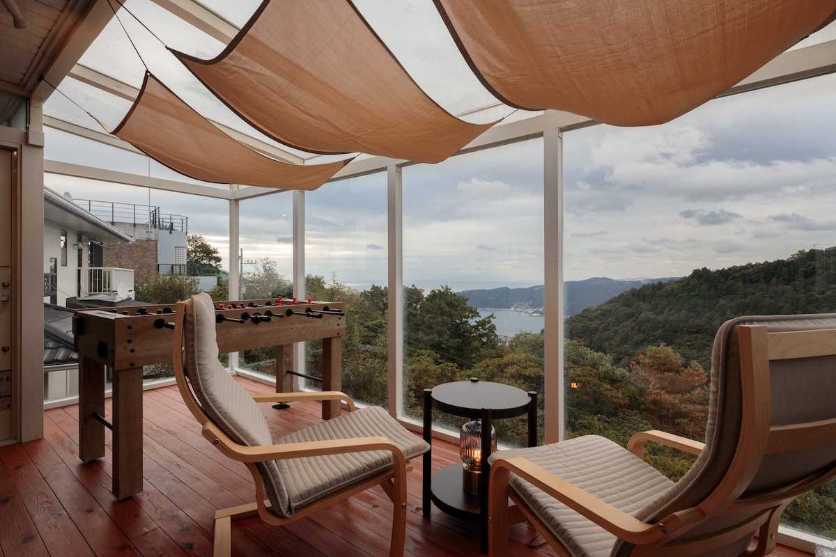 [Vuokraus enintään 12 hengelle / BBQ upea näköala] [Avajaisalennus] Lähdevedellä virtaavassa ulkoilmakylvyssä tähtitaivaan ja meren parantama matka