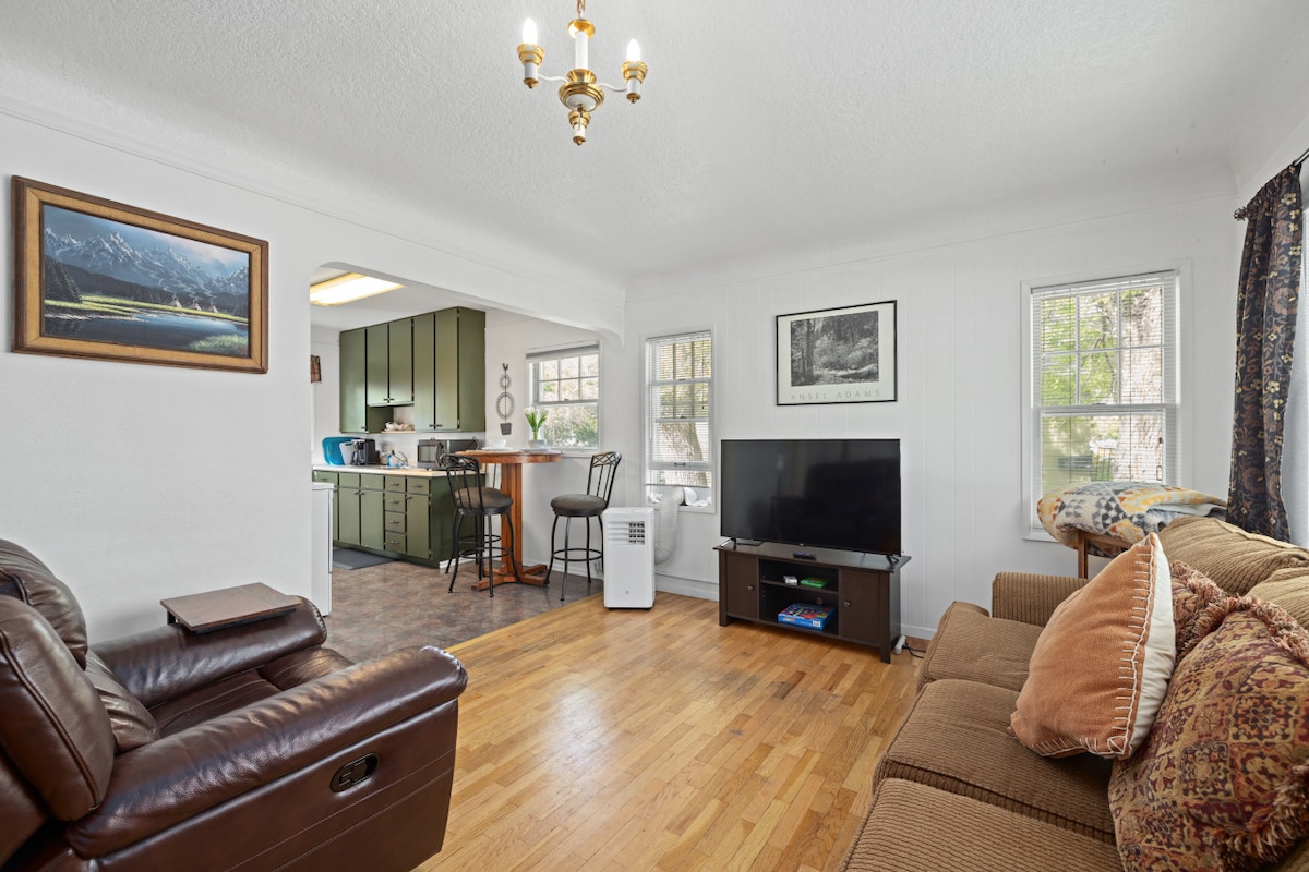 Viihtyisä ja yksityinen 2 makuuhuoneen kohde, joka on kunnostettu ja modernisoitu Airbnb:tä varten. Siellä on yksityinen kylpyallas ja sauna, täysin aidattu takapiha ja lämmitetty etupatio. Kaikki yksityistä, mitään jaettua. Uudet kodinkoneet sekä 65 tuuman Samsung-televisio, pistorasia ja USB-latausvuoteet sekä nopea internet kaikille suoratoistotarpeillesi. Mukavat uudet queen-vuoteet ja kaikki uudet huonekalut. Lähikauppa - Kävelyetäisyys noin 2 korttelia Ruokakauppa – 1,2 mailia Lentoasema – 3 mailia Keskusta – alle 1,6 km