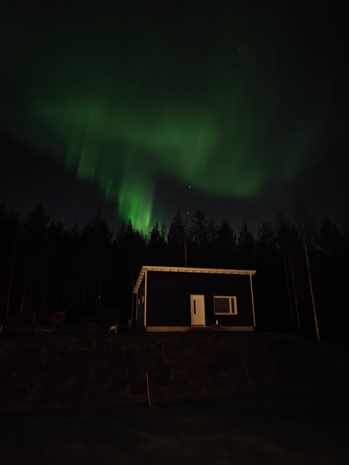 Mökki lähellä Kemijoki-jokea ja revontulia