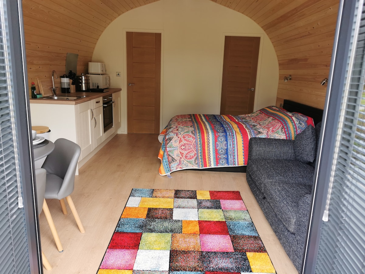 Tervetuloa Sigrid Lodgeen, yhteen Graig Escapesin skandinaavisista kolmionmuotoisista mökkeistämme. Sijaitsee kauniilla Clywdin laaksossa, joka on erittäin luonnonkaunis, ja sitä ympäröivät avoimet pellot ja kaunis maaseutu. Nauti alpakoidemme tervehtimisestä saapuessasi, ja kun astut Sigrid-mökkiin, toivomme, että hämmästyt upeasta kolmionmuotoisesta suunnittelusta, joka on viimeistelty skandinaavisessa ja pohjoismaisessa tyylissä, jossa on puutuli, tammilattia, paljon ihania mattoja ja villahuopia.