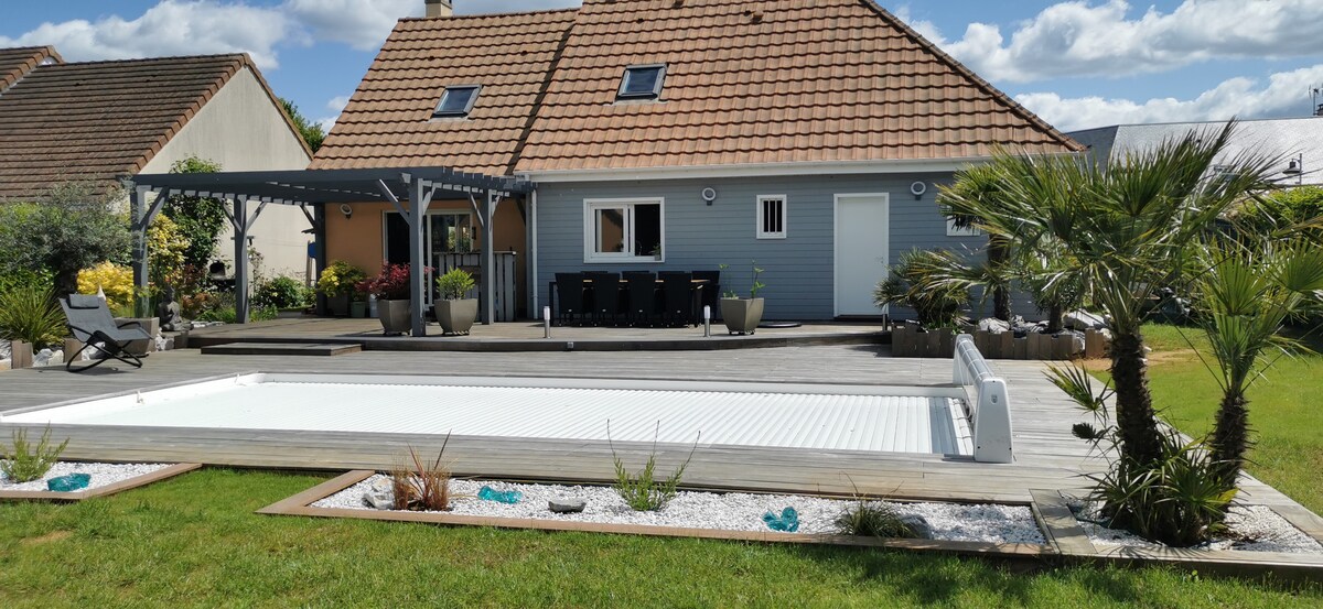 Viehättävä maalaistalo, jossa on suuri lämmitettävä uima-allas (15. toukokuuta - 15. syyskuuta) ja metsä, sijaitsee 15 minuutin päässä Le Mansin keskustasta. 2000 m2 viheralueita. Talo on avoin ulkopuolelle ja siinä on tilavat huoneet, jotka on sisustettu vanhan ja nykyaikaisen tyylin mukaan. Lomamiellyttävä tunnelma ja paljon pelejä saatavilla. Vierekkäiset majoitustilat (maalaistalo, jossa on kaksi erillistä tilaa, yksi vuokrattava tila ja yksi omistajien tila). Kesällä kiinteistö on varattu vain vuokralaisille.