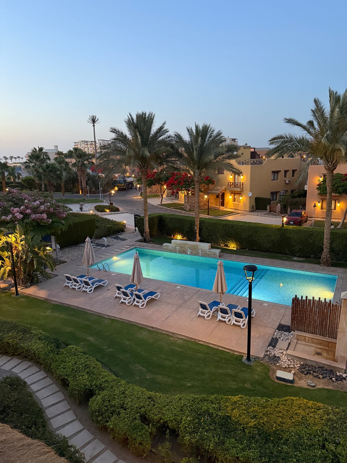 Tilava 4 makuuhuoneen rivitalo Mountain View Sokhna 1:ssä, ihanteellinen VAIN perheille (enintään 8 aikuista). 2 makuuhuonetta, 3 kylpyhuonetta, olohuone älytelevisiolla ja IPTV:llä, täysin varustettu keittiö ja laaja puutarha. Suoraan uima-altaan edessä, lähellä lämmitettyä uima-allasta, 3 minuutin kävelymatka (~300 m) rannalle. Kylän mukavuudet: lähellä Dayra Campin lasten leikkipaikka, jalkapallokenttä, klubitalo, supermarketti, vesiurheilua ja venesatama. VAIN perheille.