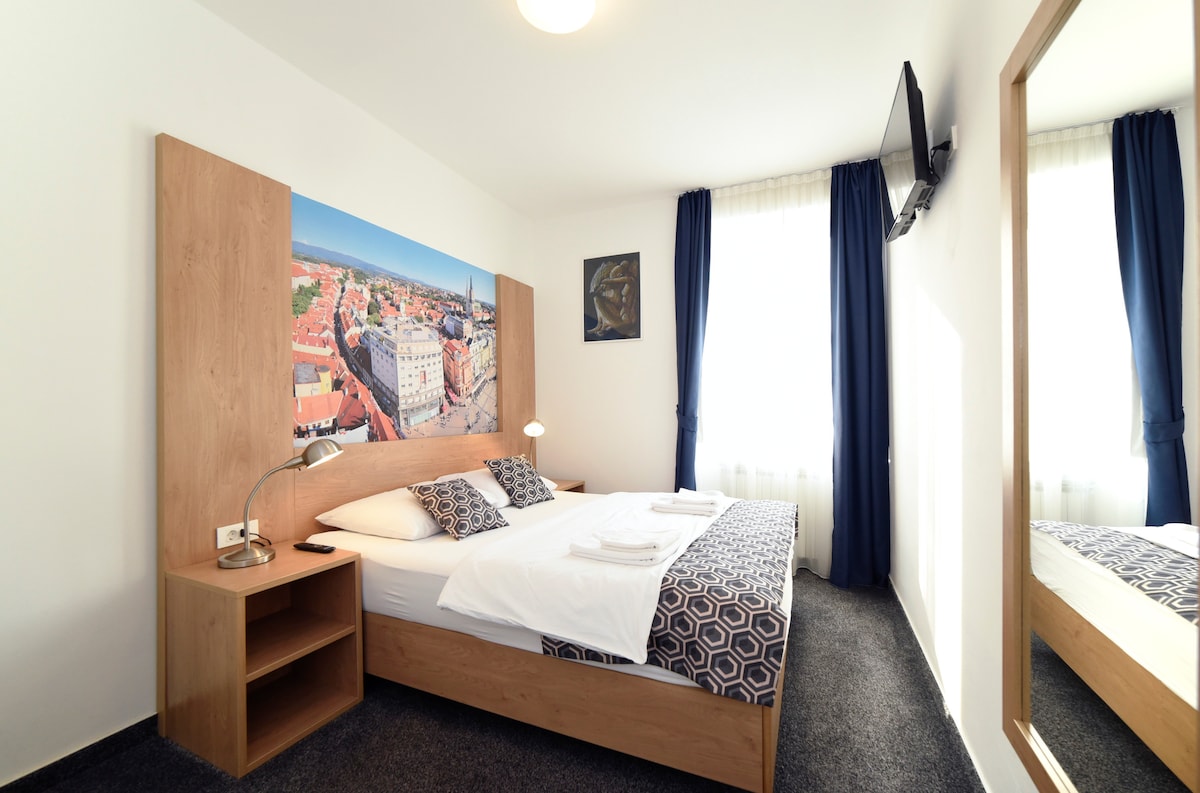 Viehättävä parihuone Zagrebin keskustassa, joka sijaitsee 1800-luvun rakennuksessa, kunnostettu vuonna 2019. Huoneessa on joustinpatjakokoinen queen-vuode, ja siinä on jääkaappi, tallelokero, ilmastointi, satelliitti, WiFi ja parveke. Hotellin vierailla on pääsy kattoterassin baariin, josta on kuuluisa näkymä yläkaupunkiin, ja sisätiloissa sijaitsevaan ravintolaan, jossa on perinteisiä kroatian ruokia.