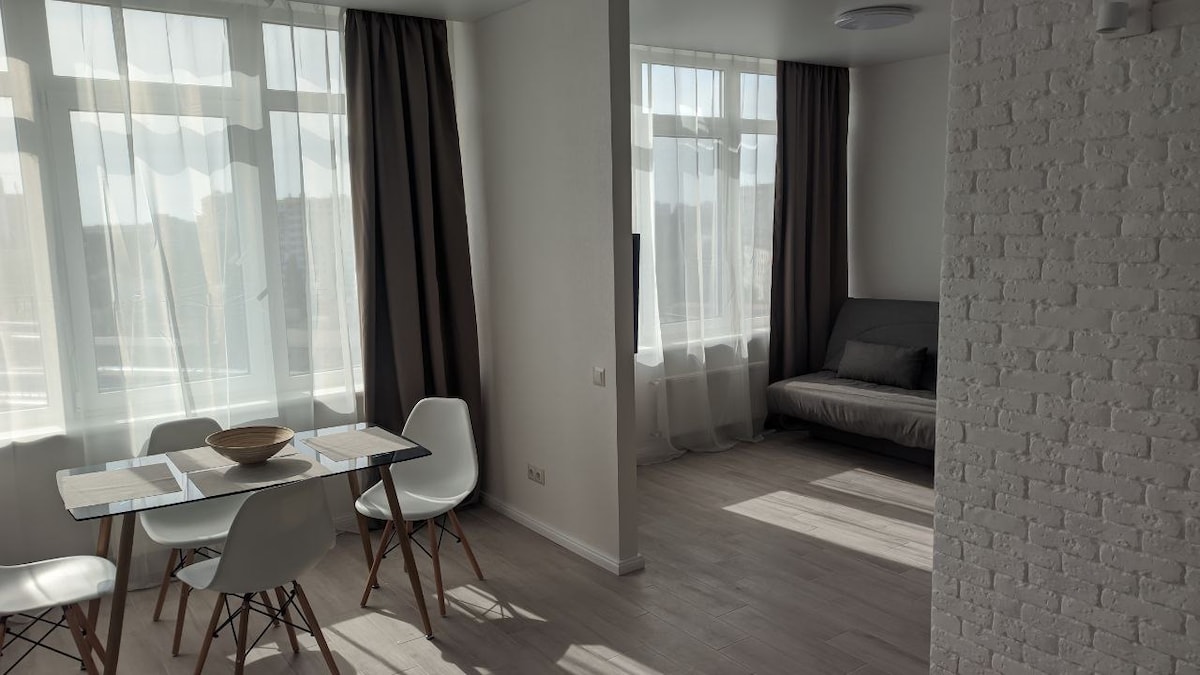 🏙️ Sijaitsee 25-kerroksisen rakennuksen 12. kerroksessa. 🕓 Sisäänkirjautuminen milloin tahansa, 24 tuntia vuorokaudessa! Ei hätää, jos saavut myöhään illalla 🌙 ❗ Kaikki vuodevaatteet on ammattimaisesti puhdistettu kuivapesussa! ❗ Sisäsuoja! (Maanalainen pysäköinti) 💰 Sisältyy hintaan: 🛏️ Mukavat raidalliset satiiniliinavaatteet 🍽️ Kaikki astiat ja keittiövälineet 🩴 Kertakäyttöiset tossut 🧼 Saippua ja suihkugeeli 🌐 Nopea Wi-Fi ☕️ Espressokone + kahvi 🍵 Teepussien valikoima